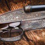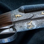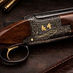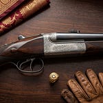You lift the gun from its cradle. The balance settles instantly, as if the stock has known your hands for years. The figure of the walnut glows, the gold and silver inlays catching a spark of sun. Even before mounting it, you can feel the purpose in its dimensions, the promise in its weight.